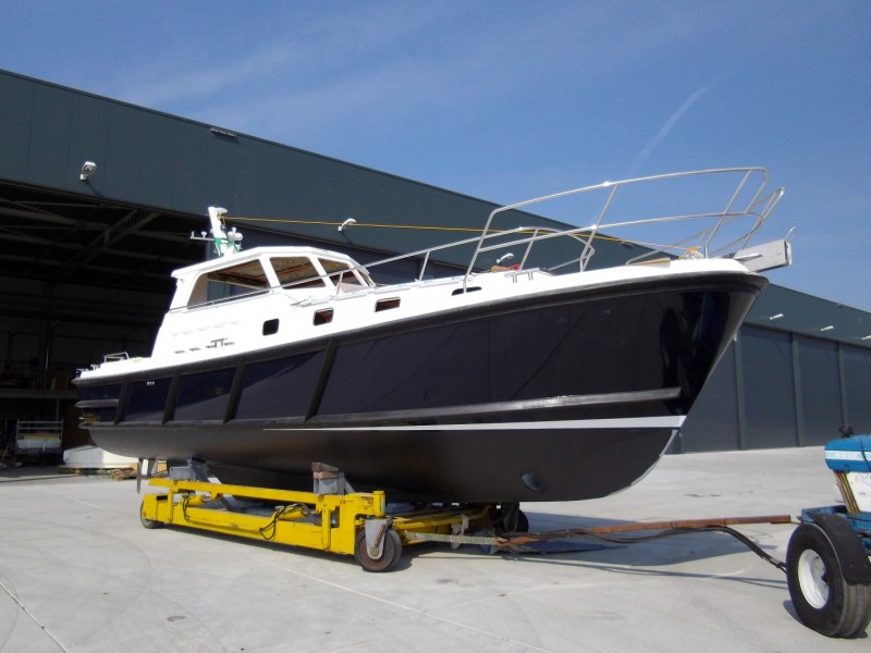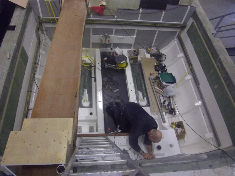 This will be the first of this type with rubber sprayrail, no external teak details and an all around pilot type handrail with pull pit instead of the standard guardrail. “Jock’s” home port will be Hamble where it will also be on display at the Southampton Boat Show in 2013.